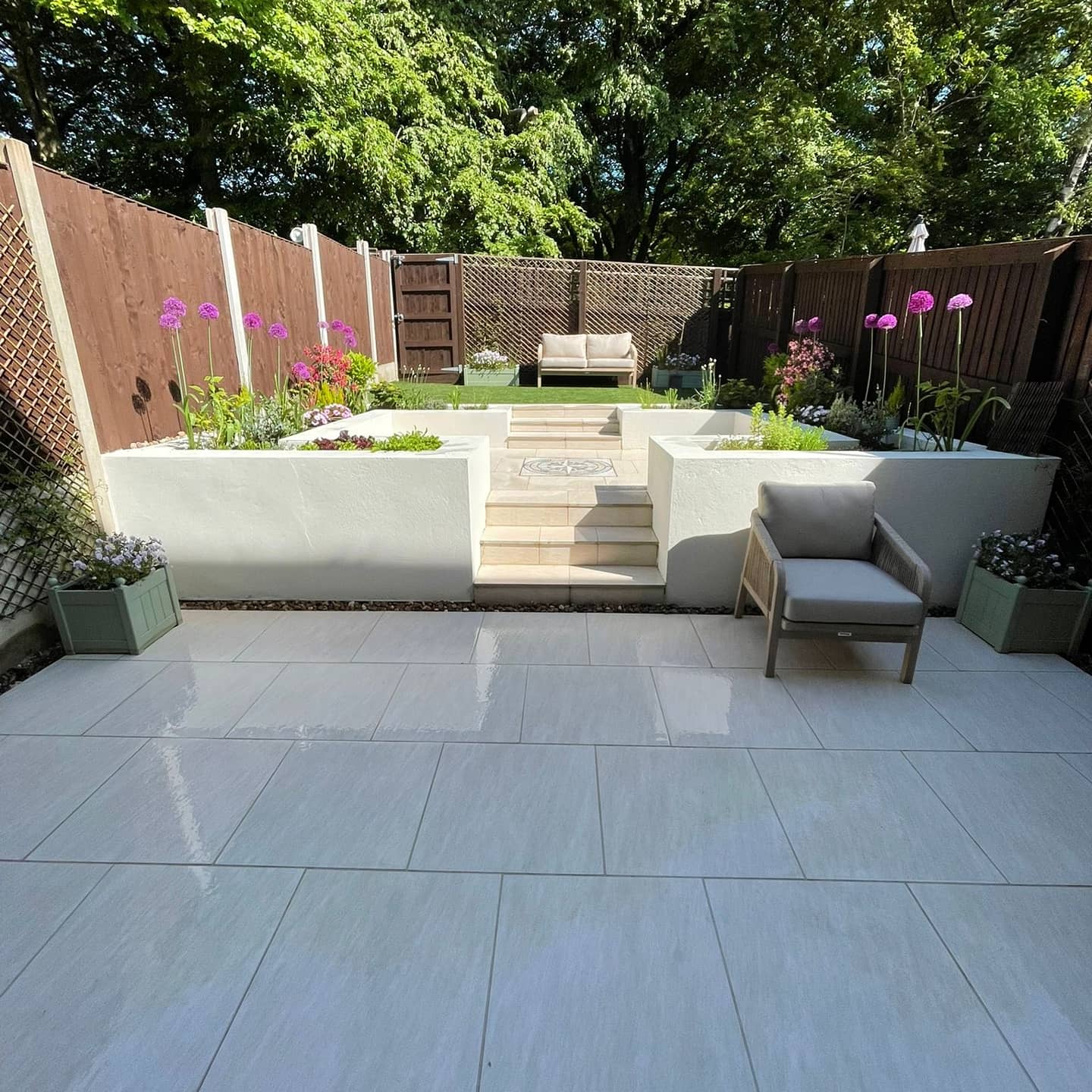 Porcelain paving is a durable, weather-resistant, and low-maintenance option that enhances outdoor spaces. It is resistant to stains, slips, and fading, making it ideal for patios, pathways, and garden areas.